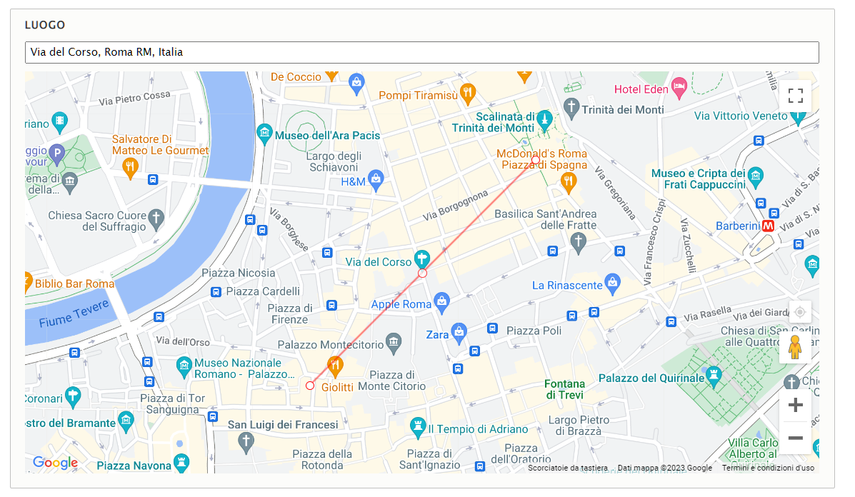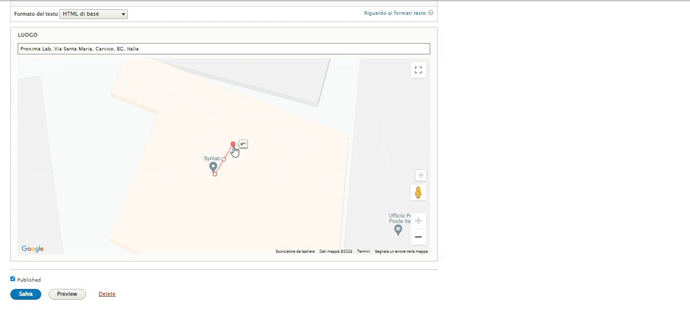 Ogni qualvolta si vorrà geolocalizzare il luogo legato al contenuto che si sta pubblicando, basterà digitare l'indirizzo all'interno del campo apposito nel box "Luogo".